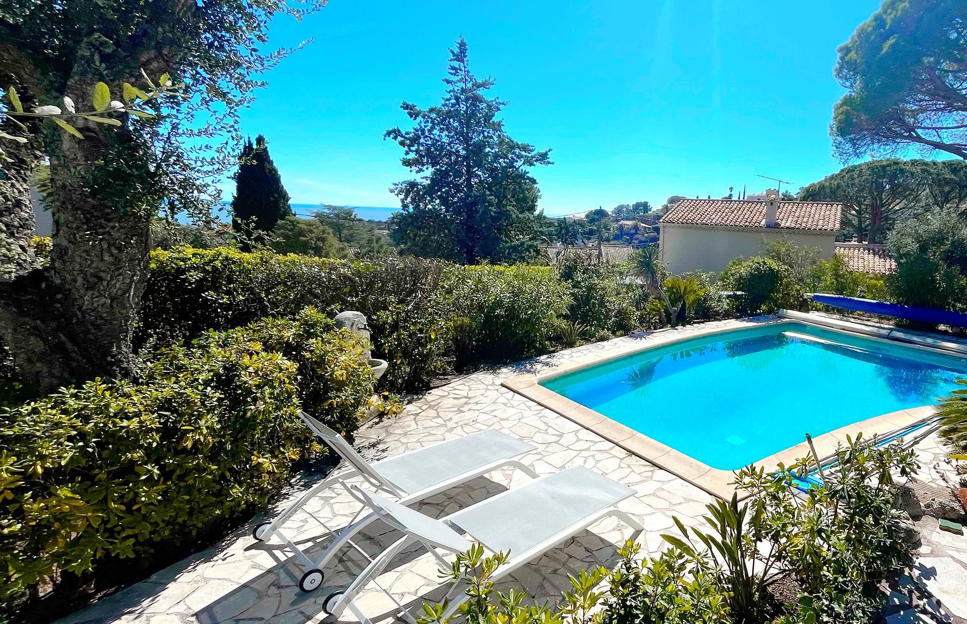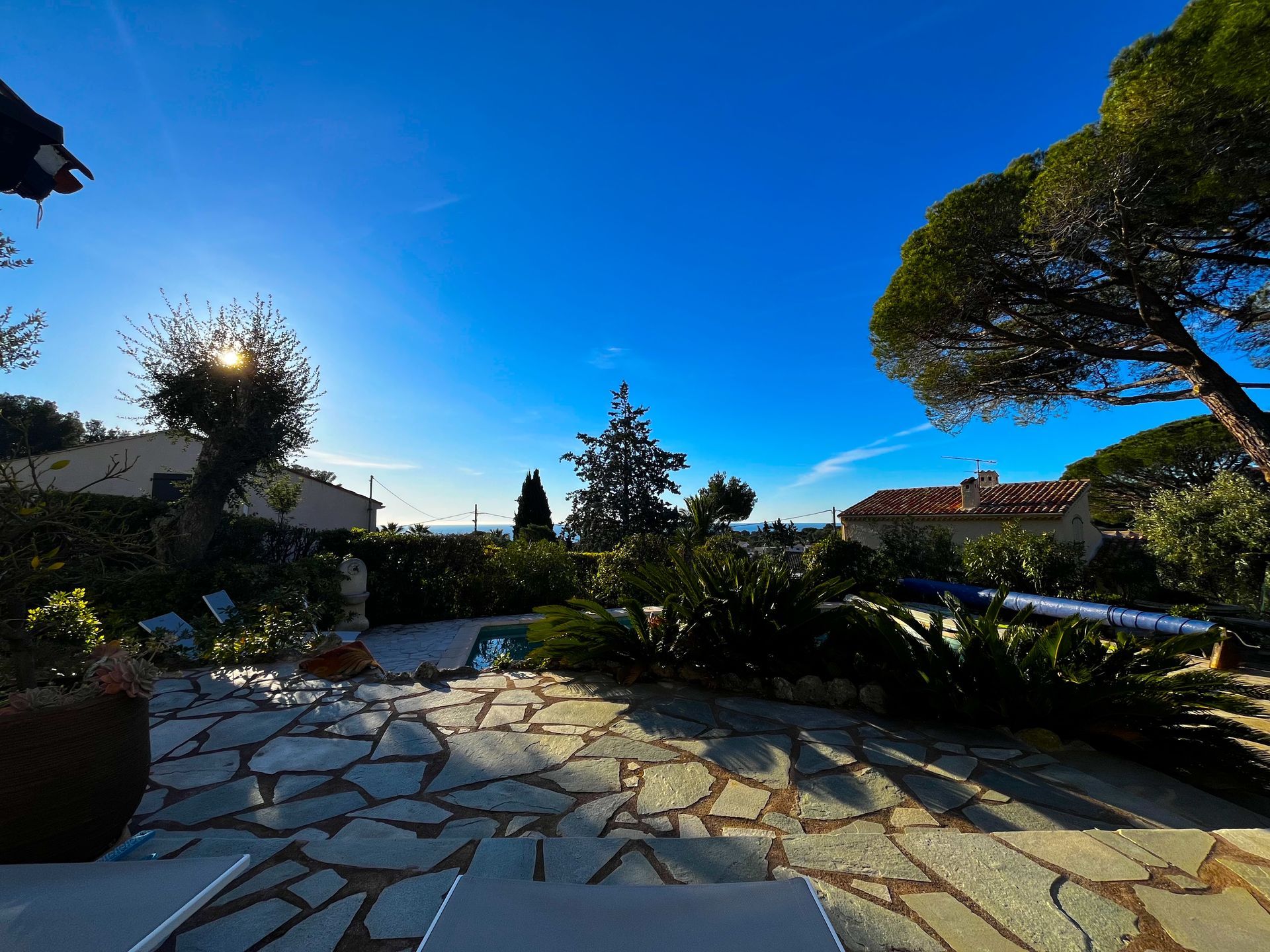 Excellent, everything is great. Lots of sunny and shady spots. Very nice pool with counter-current system for athletic swimming. Beautiful roof terrace. Generously equipped with barbecue and kitchen, just like at home but with the flair of the Côte d'Azur.