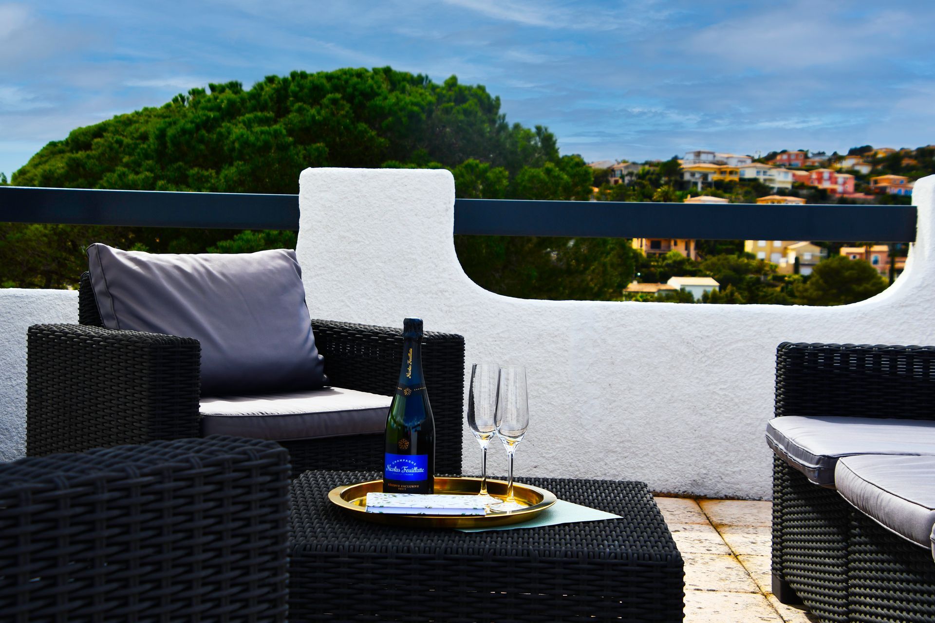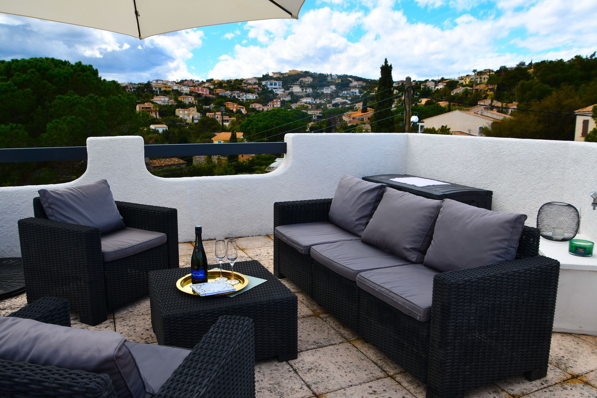 A staircase at the side of the villa leads to the roof terrace with its luxurious lounge. This roof terrace is the absolute highlight of the accommodation and offers a 360° panoramic view of the Mediterranean Sea and the bay of Saint Aygulf. An idyllic place to enjoy breathtaking sunsets with delicious aperitifs.